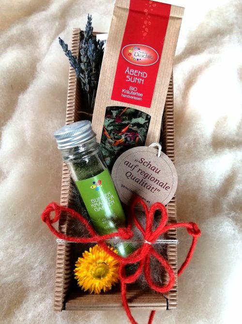 Gerne können Sie die Kartonschalen und Geschenkboxen auch nach Ihrem Geschmack und nach Lust und Laune befüllen! Schreiben Sie dazu gerne an kontakt@biohof-deschlitz.at